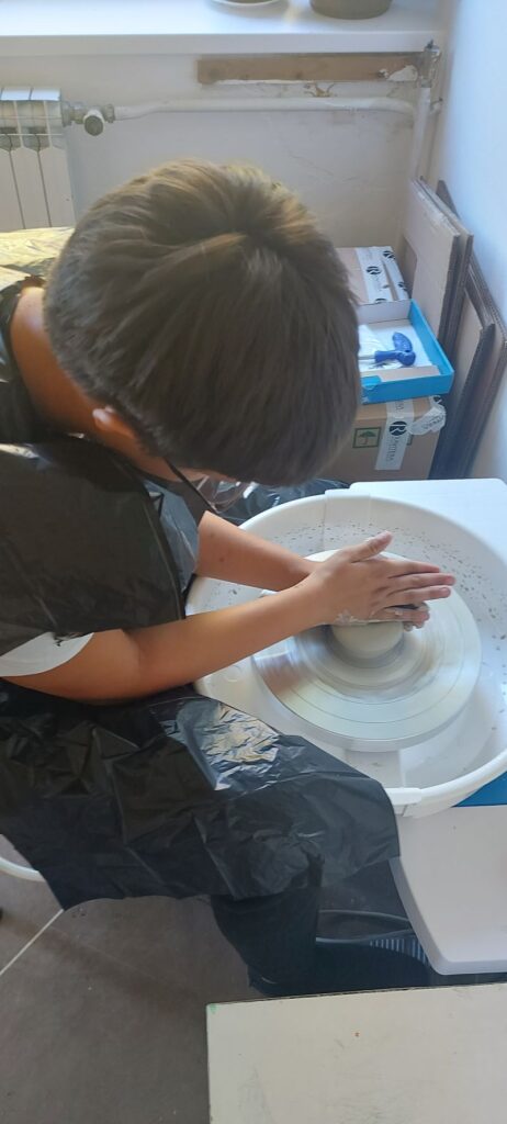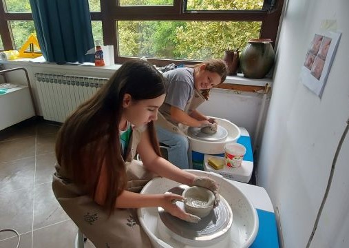 Učenici viših razreda imali su priliku upoznati se s prvim koracima rada na lončarskom kolu. Iako nije lako centrirati glinu, upornošću i strpljenjem svladali su početne izazove te su nastali i prvi radovi na kolu. Radionice keramike trenutno se održavaju u likovnoj učionici, a uskoro će biti osposobljena nova prostorija namijenjena isključivo za keramiku. U njoj će se nalaziti keramička peć i čak šest lončarskih kola, što će omogućiti još kvalitetniji i bogatiji rad.