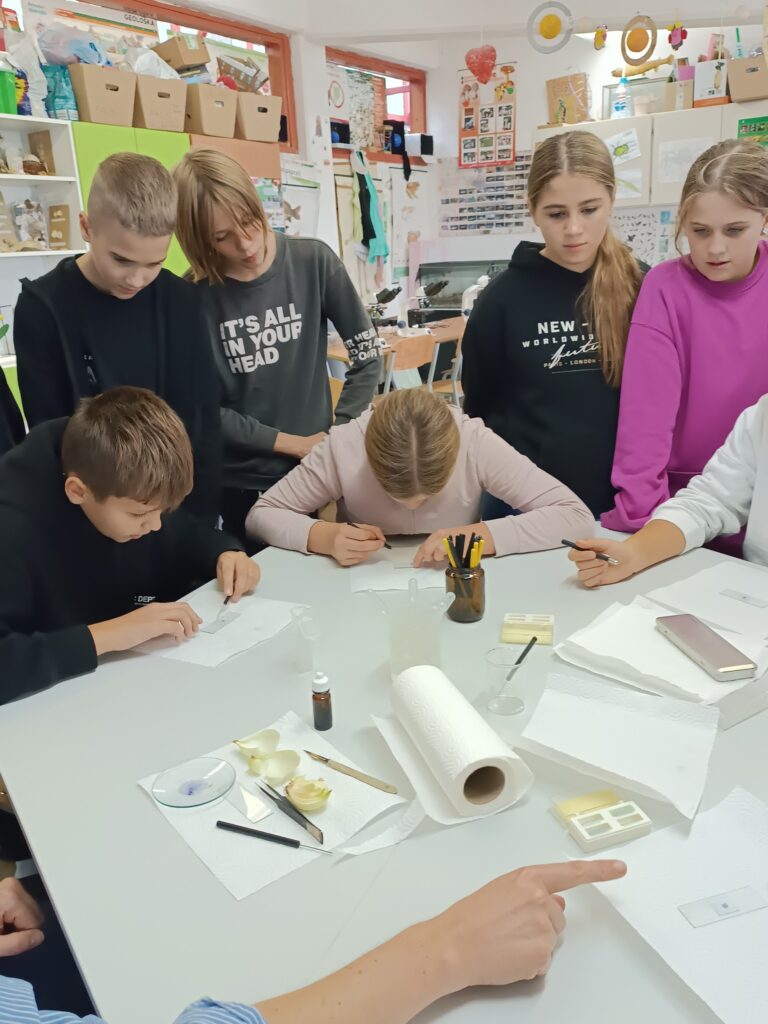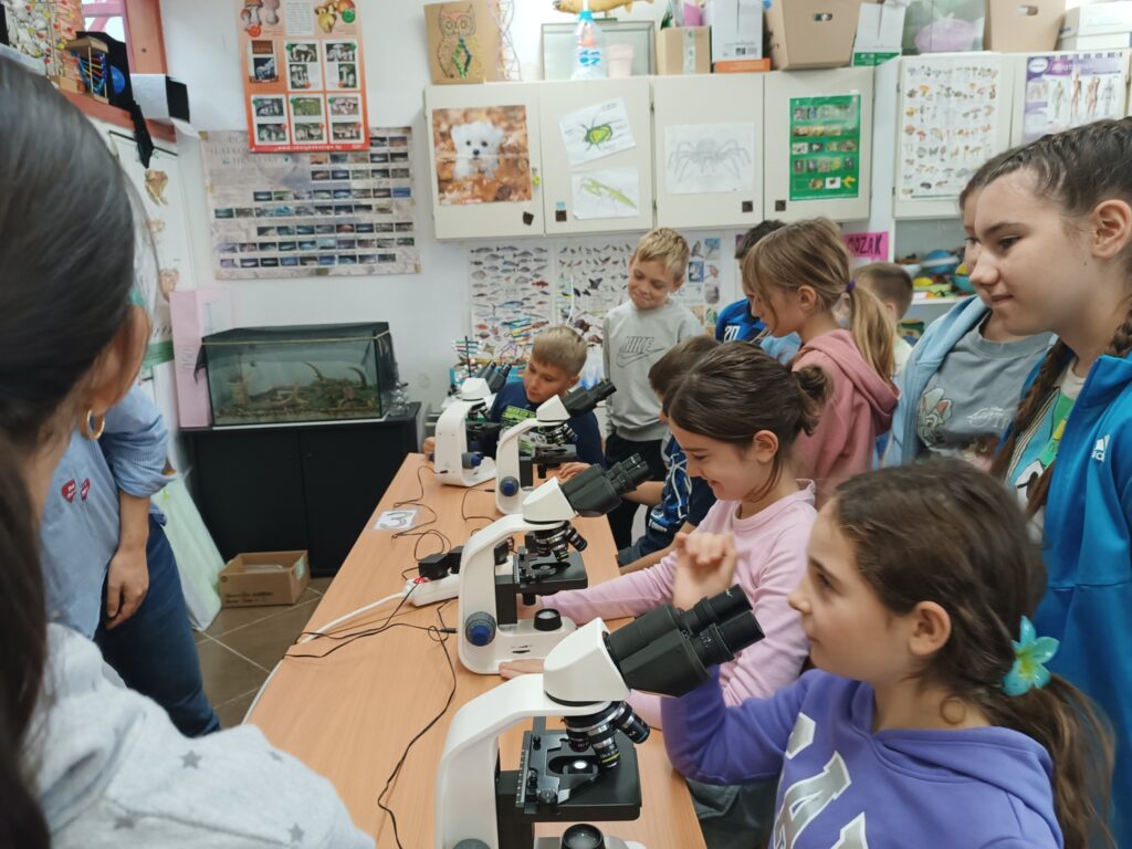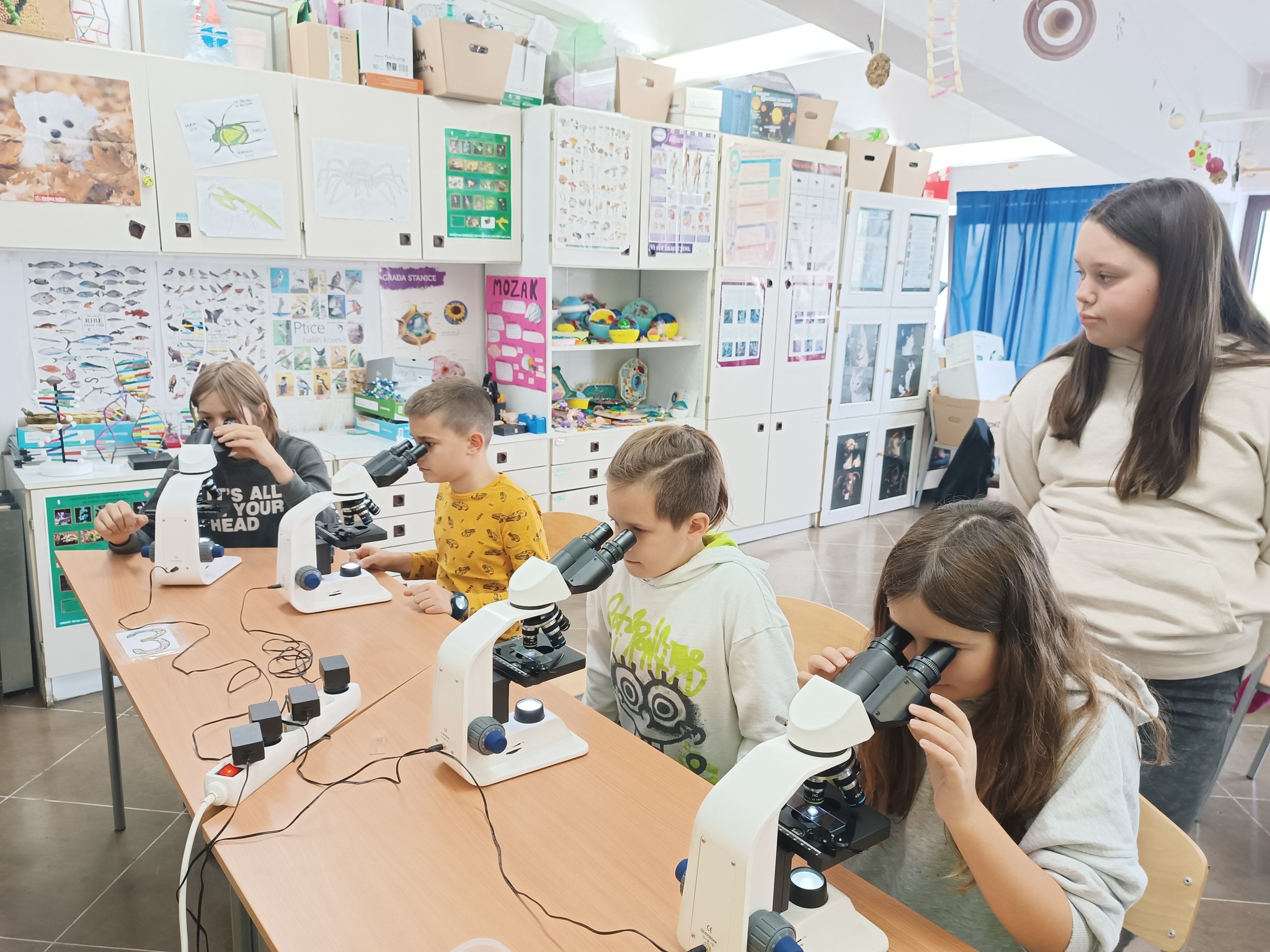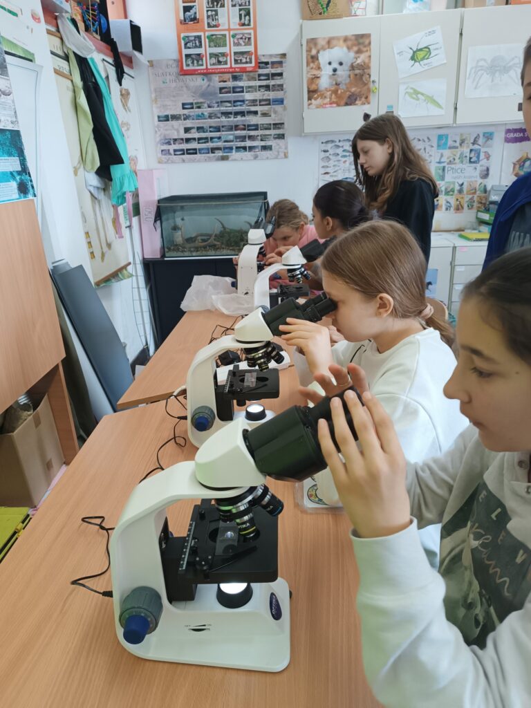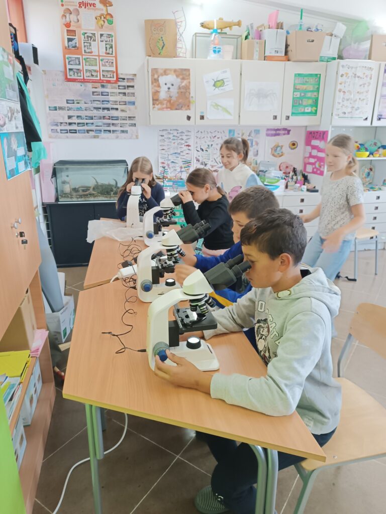 Učenici petih razreda uspješno su usvojili tehniku izrade mikroskopskih preparata i pravilne uporabe mikroskopa. (M.M.)