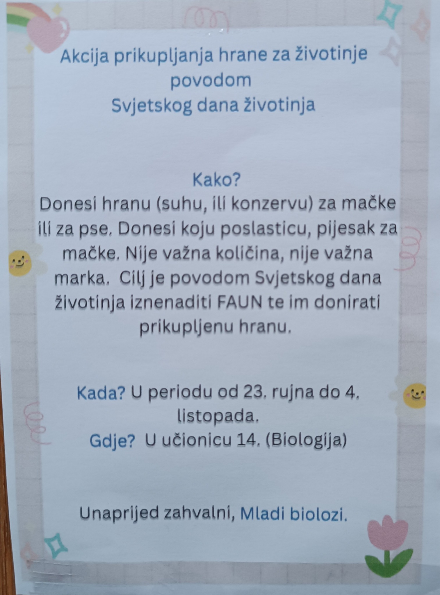 Ponosni smo što naši učenici i djelatnici uvažavaju rad Udruga koje brinu o napuštenim životinjama te su im svojim donacijama pružili podršku. Hvala svima! (M. M.)