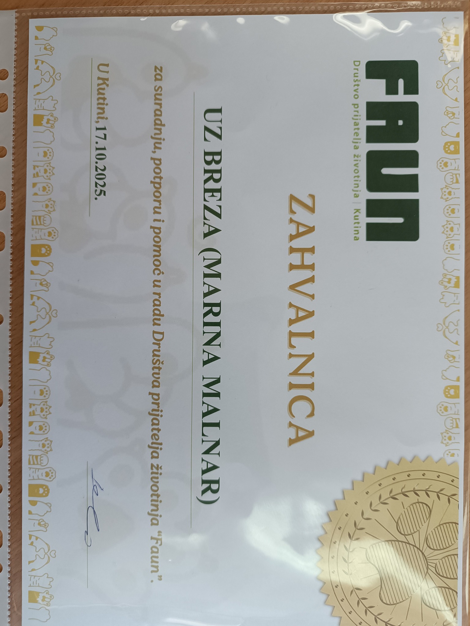 Pohvala učenicima 1. b, 4. a, 4. b, 3. b i učenicima posebnog odjela koji su prikupili najviše hrane. Hvala i ostalim učenicima predmetne i razredne nastave i nastavnicima na donaciji. Učenička zadruga Breza organizirala je ovu akciju te donirala 40 konzervi hrane za mačke.
