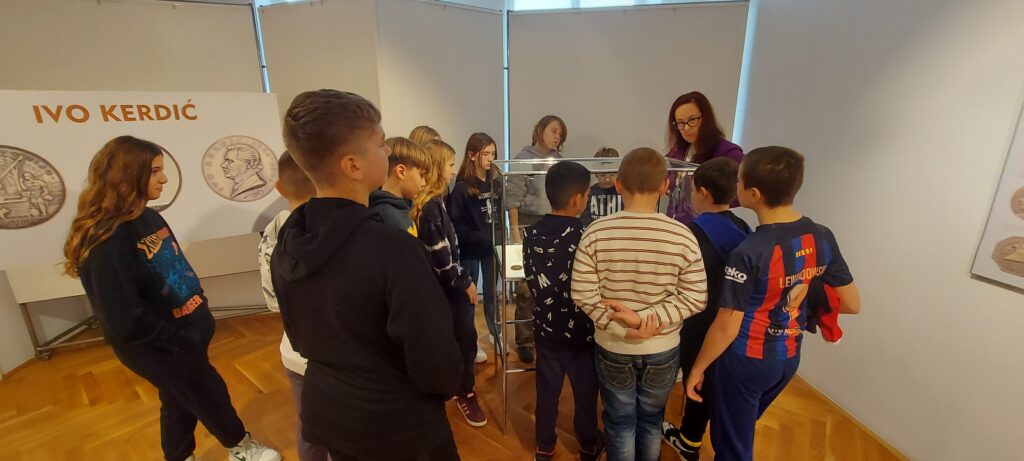 Kustosica Galerije Jelena Batinić predstavila je izložbu poznatog hrvatskog medaljera i kipara Ive Kerdića iz prve polovice 20. stoljeća. Izložba nam je pružila uvid u njegovu biografiju i likovne radove. Istražili smo različite dokumente, stare svjedodžbe umjetnika, fotografije, medalje, plakete, značke, skulpture, kalupe, crteže i slike. Ivo Kerdić je autor više od 500 medalja pa smo na njima zadržali pažnju. Ponovili smo što je reljef i upoznali iznimnu vještinu izrade medalja.