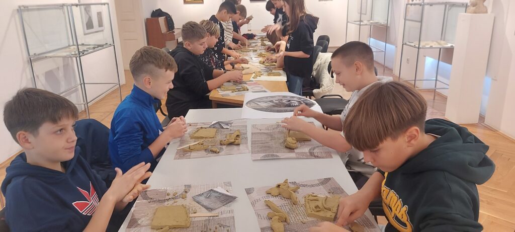 Kustosica Galerije organizirala je tematsku radionicu. Zadatak je bio izraditi slagalicu od gline koja bi prikazivala jednu Kerdićevu medalju. Svaki učenik izradio je mali reljef koji je predstavljao djelić cjeline. Bilo je zanimljivo spajati dijelove i gledati kako se postupno nazire cijela medalja. Radionica nam je pružila iskustvo izrade reljefa i timskog rada.