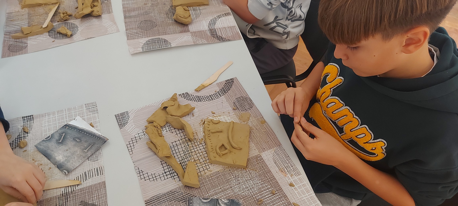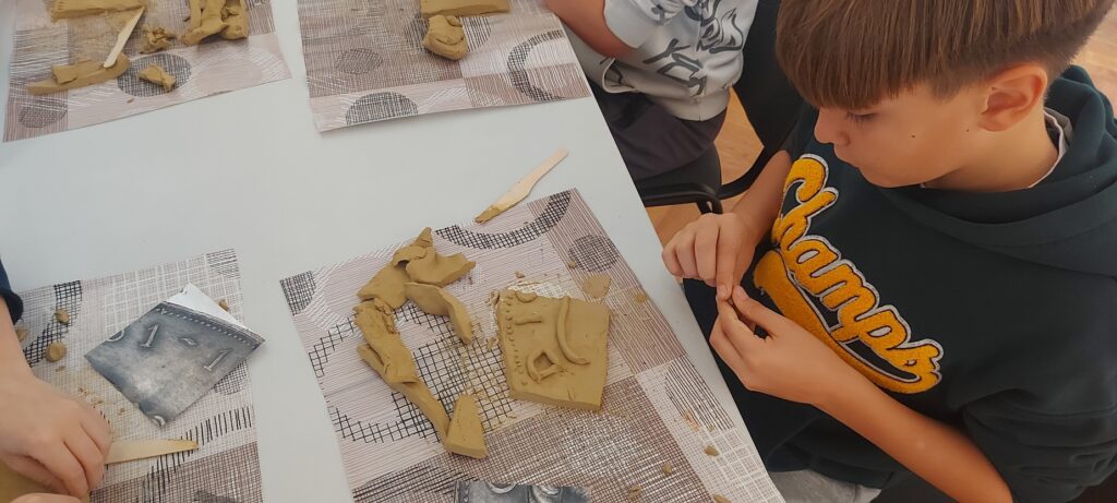 Kustosica Galerije organizirala je tematsku radionicu. Zadatak je bio izraditi slagalicu od gline koja bi prikazivala jednu Kerdićevu medalju. Svaki učenik izradio je mali reljef koji je predstavljao djelić cjeline. Bilo je zanimljivo spajati dijelove i gledati kako se postupno nazire cijela medalja. Radionica nam je pružila iskustvo izrade reljefa i timskog rada.
