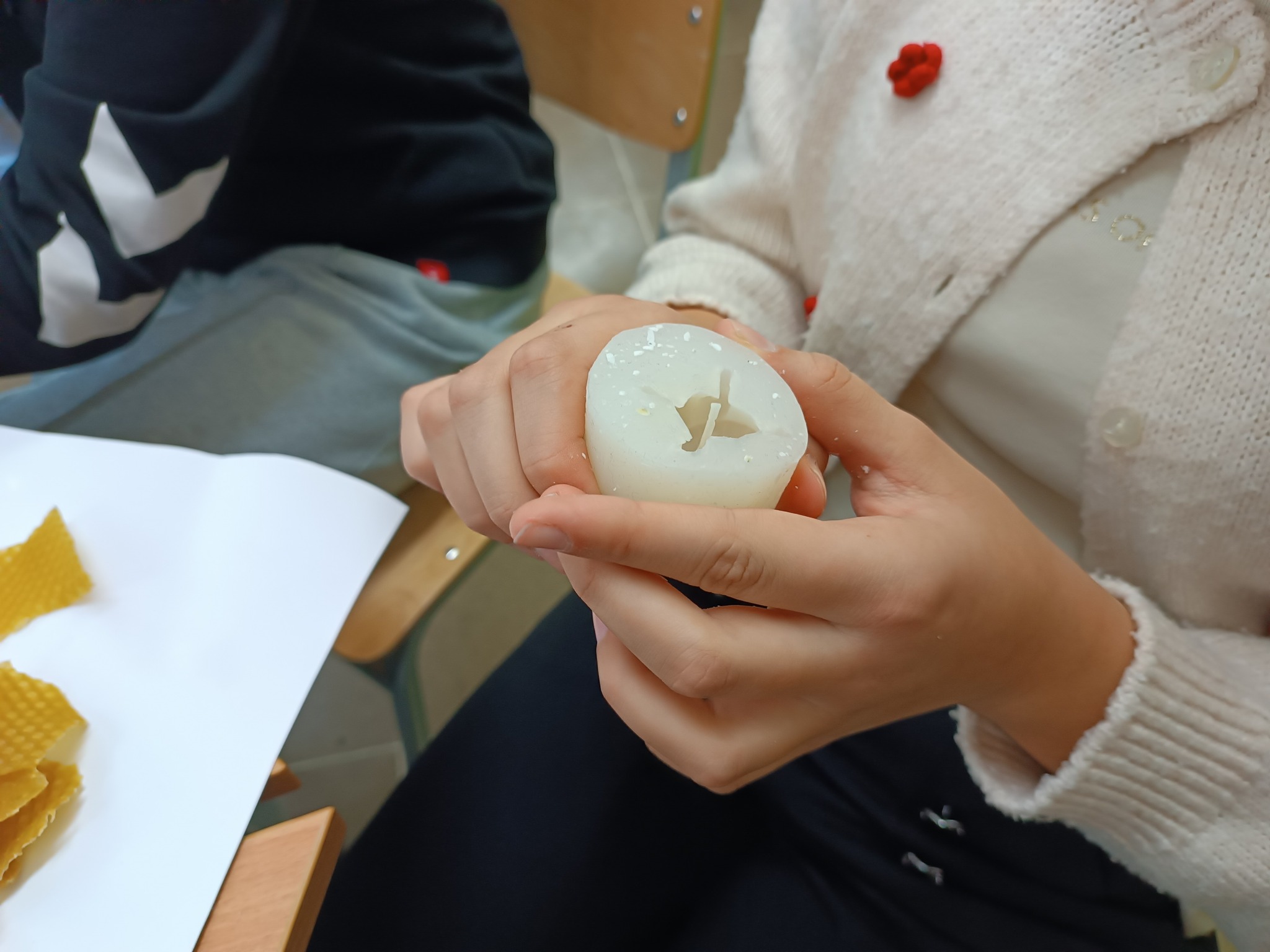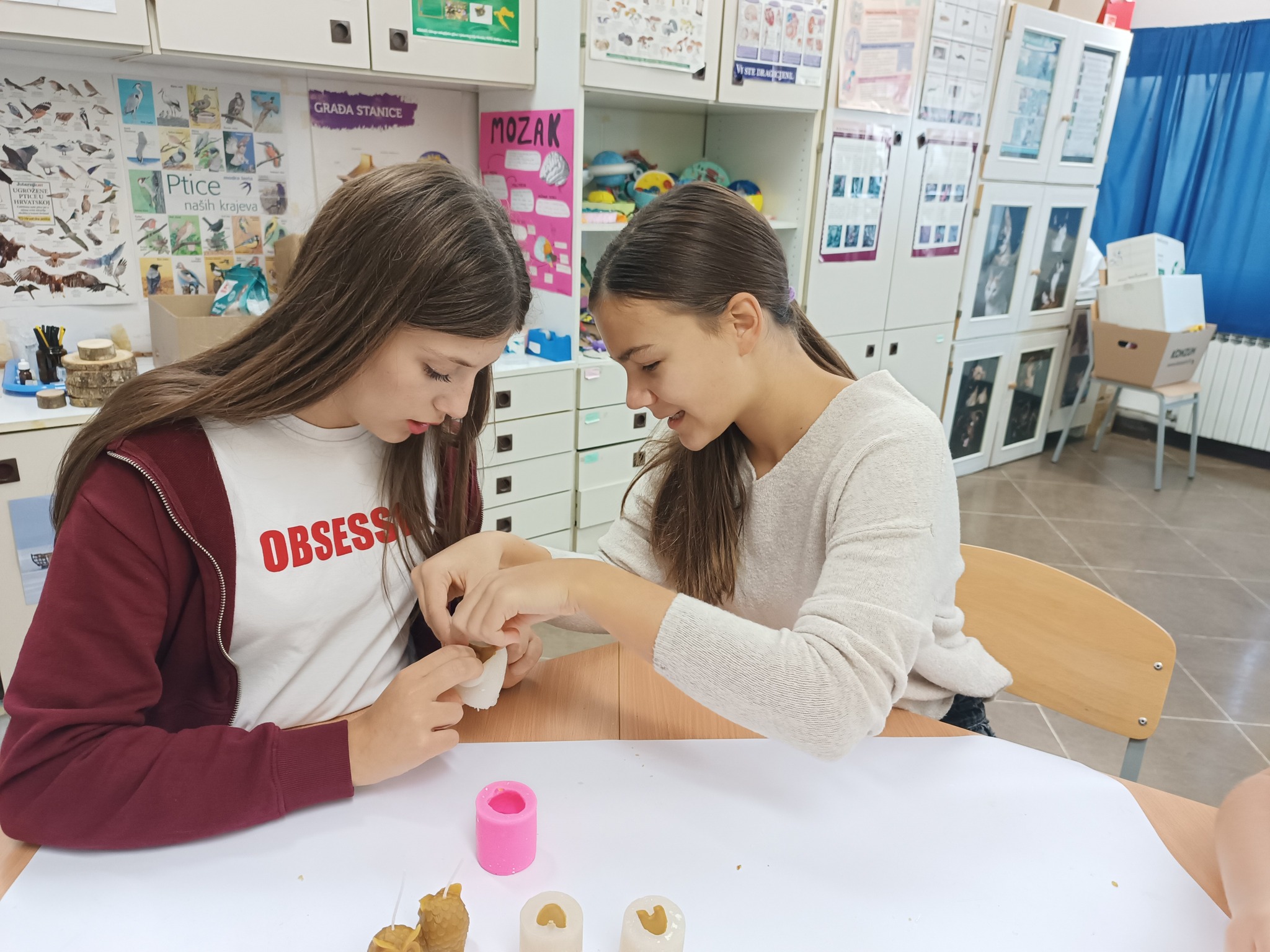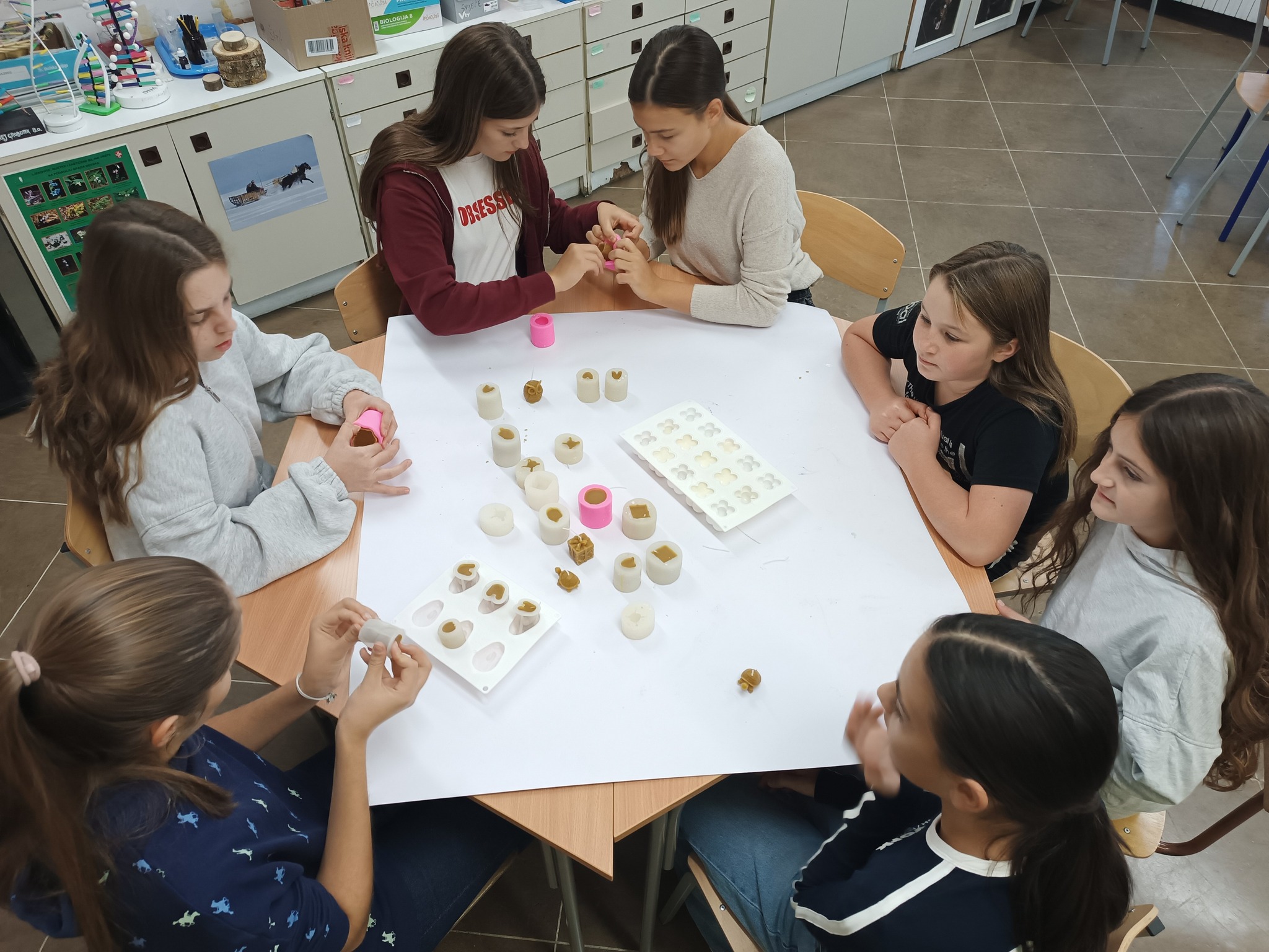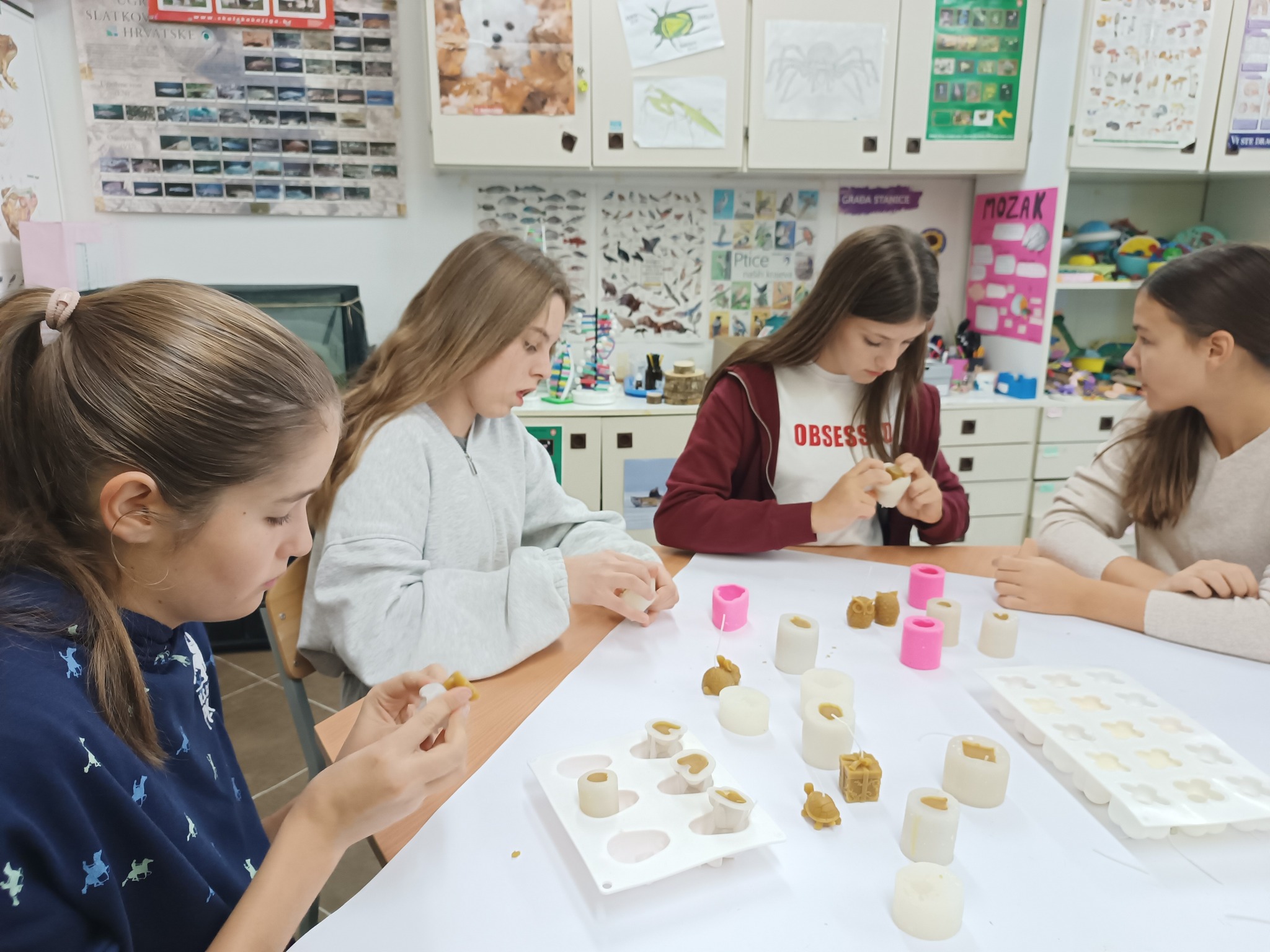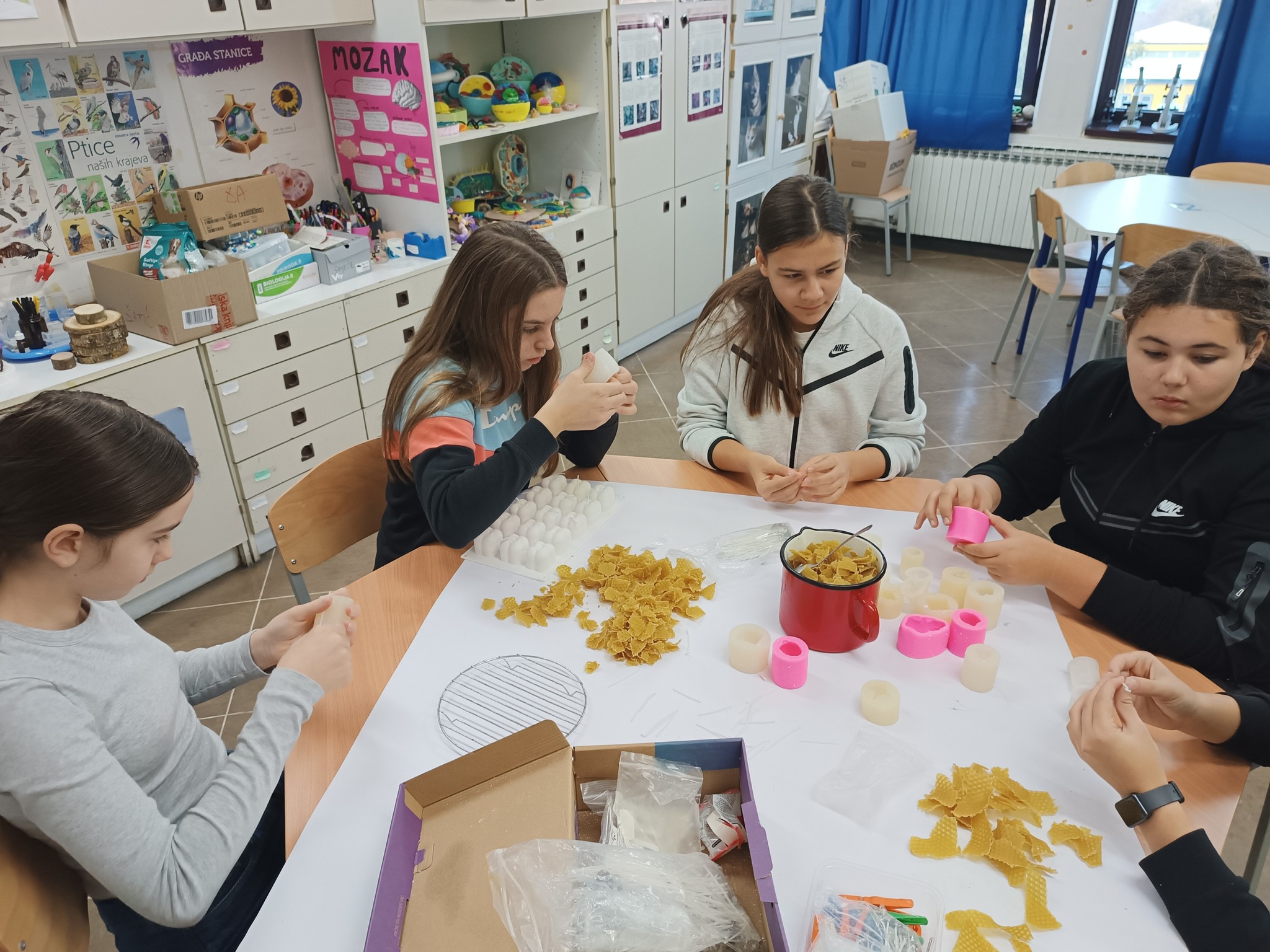 Zadrugari vježbaju strpljenje i preciznost pri izradi narukvica i svijeća od pčelinjeg i sojinog voska.