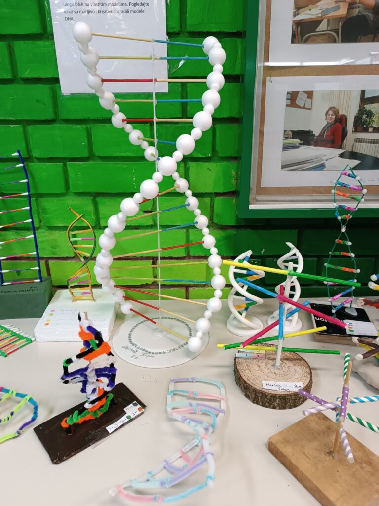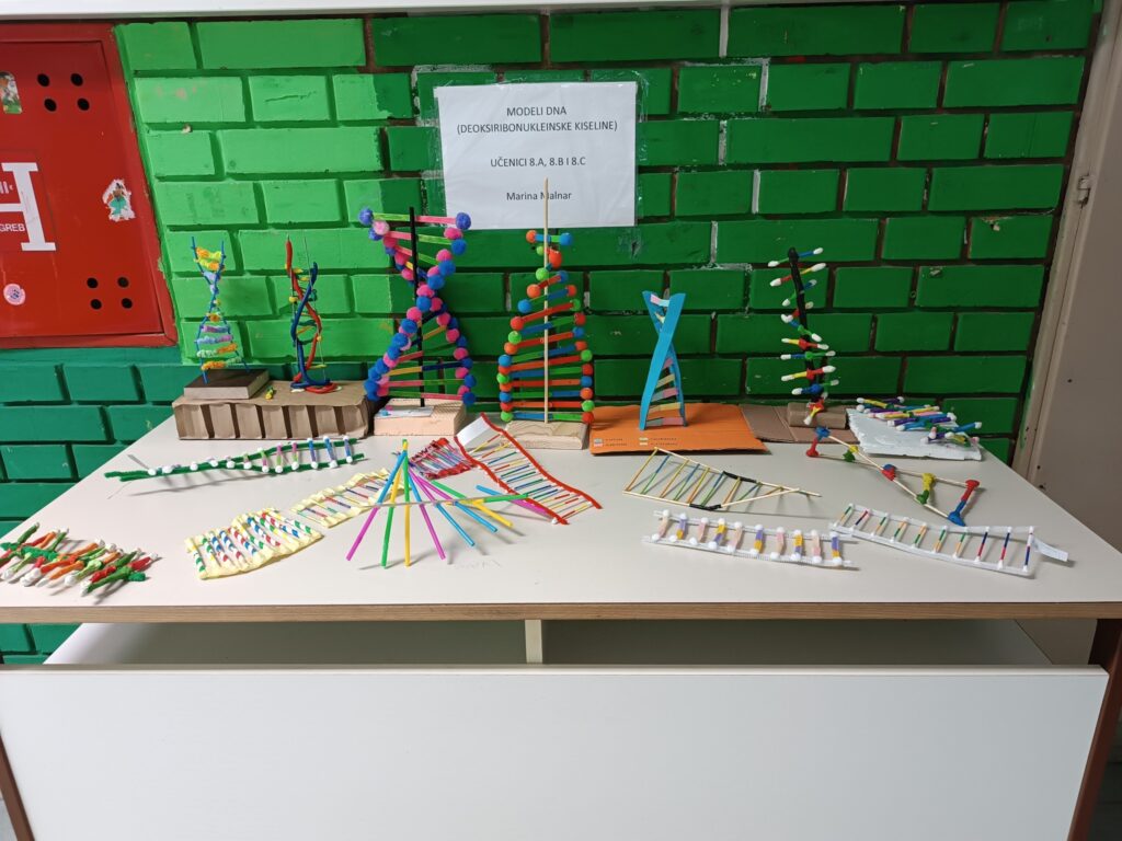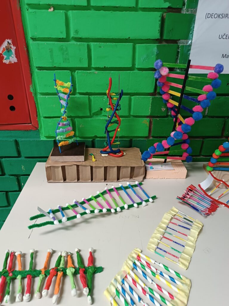 Učenici osmih razreda naučili su primjenjivati pravilo komplementarnosti, opisati građu i ulogu DNA na vlastitim modelima. Pogledajte kako su marljivo i kreativno izradili modele DNA. (M.M.)