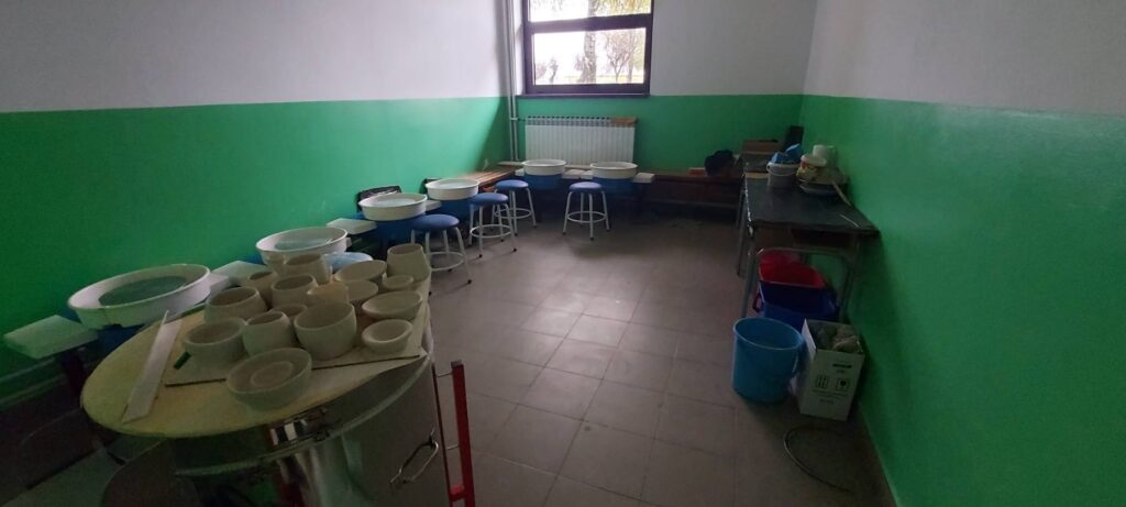 – Prostorija za rad glinom prilagođena je u prostorijama skladišta (stare garderobe za učenike). U blizini se nalaze vodovodne i odvodne instalacije.