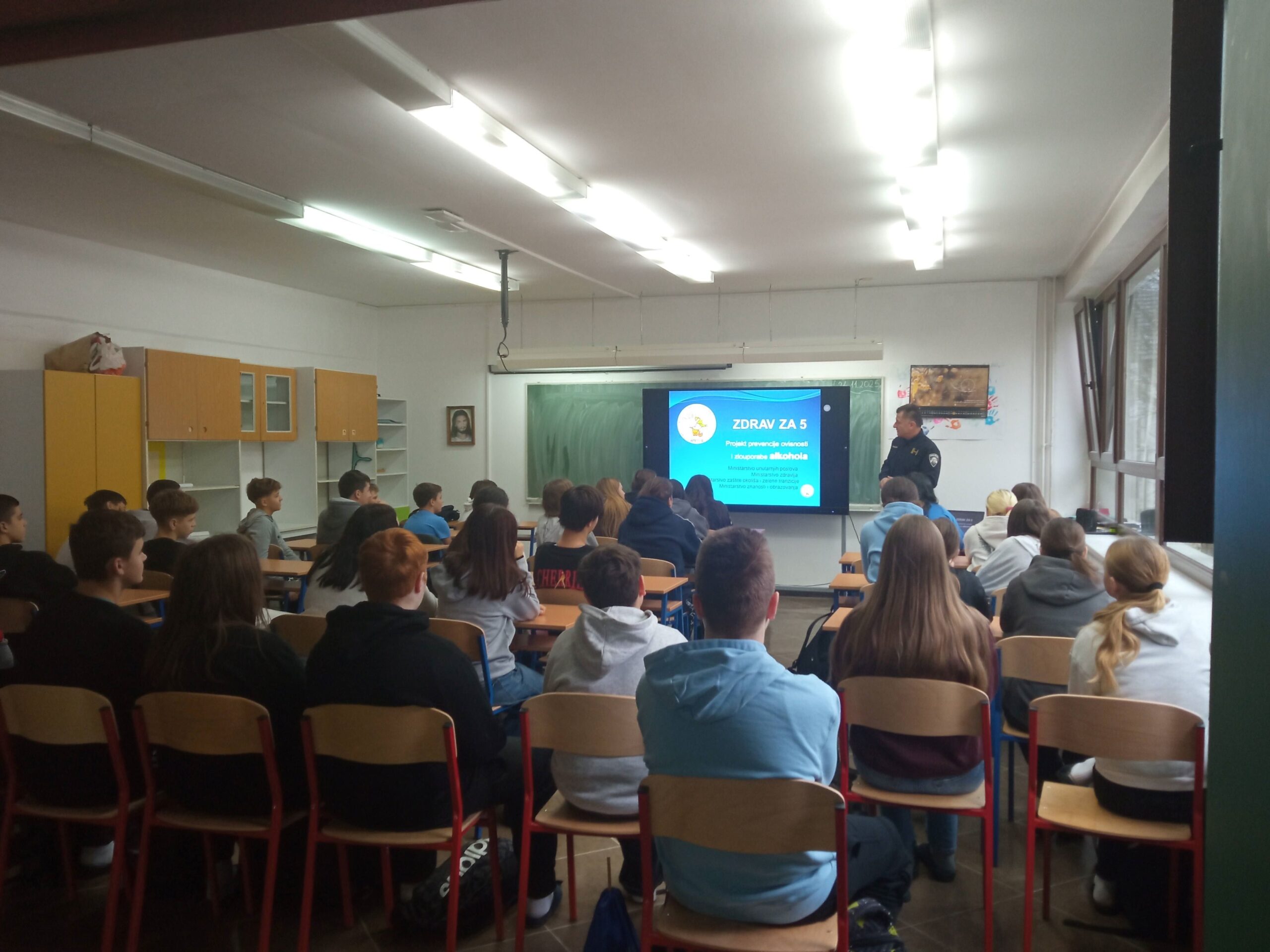 Povodom Mjesec borbe protiv ovisnosti koji se obilježava od 15. studenoga do 15. prosinca te u sklopu projekta „Zdrav za pet“, u našoj školi je dana 25. 11. 2025. održano predavanje za učenike osmih razreda na temu “Alkohol i ovisnost”.