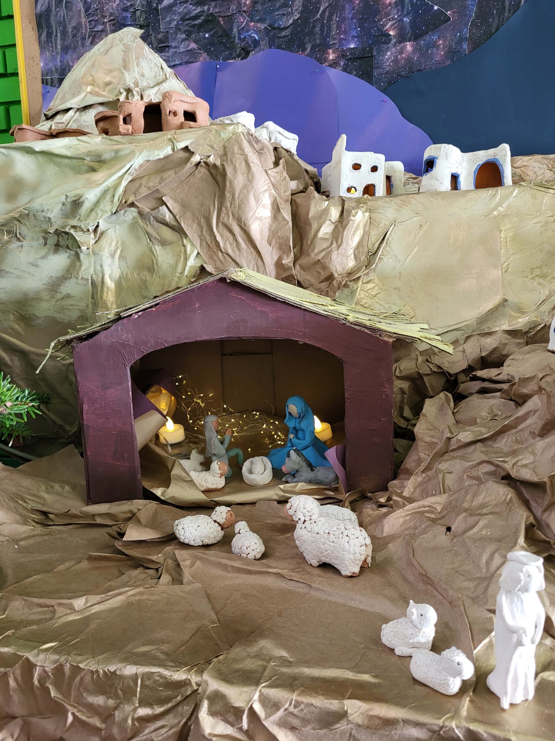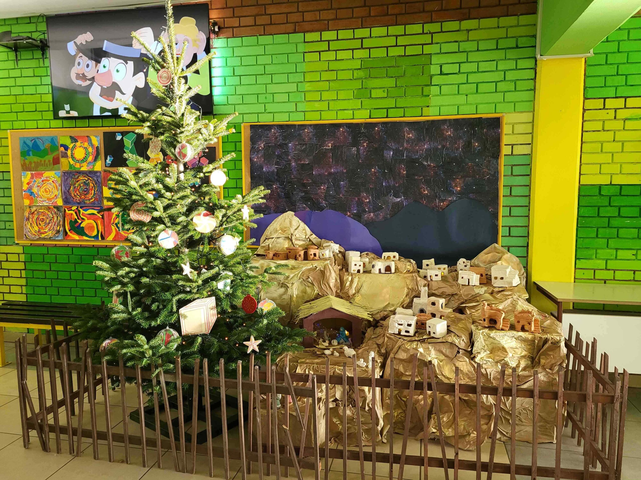 Likovna skupina naše škole s učiteljicom Zvjezdanom Mihalke ukrasila je bor koji sada krasi naš hodnik. Marljivi učenici izradili su posebne i maštovite ukrase, a svi znamo da ono što dječje ruke izrade ima posebnu čar i toplinu. Ispod bora se nalaze jaslice, također rezultat truda i kreativnosti naših učenika. 🎄