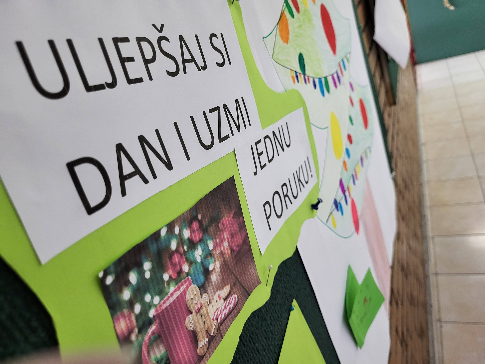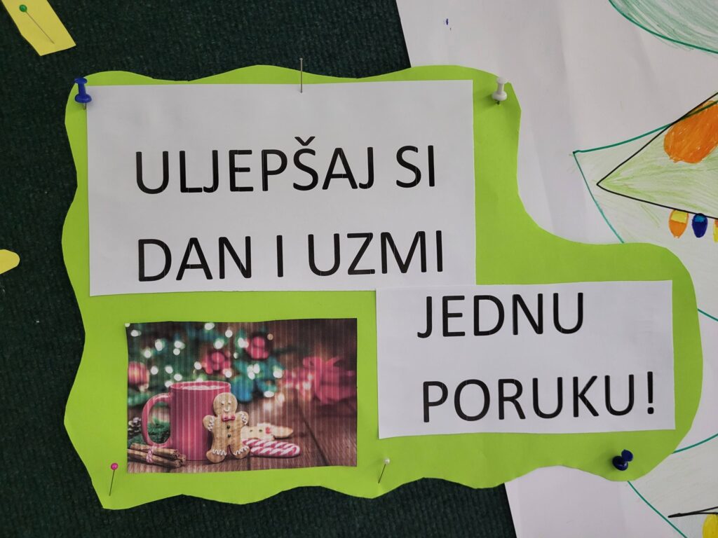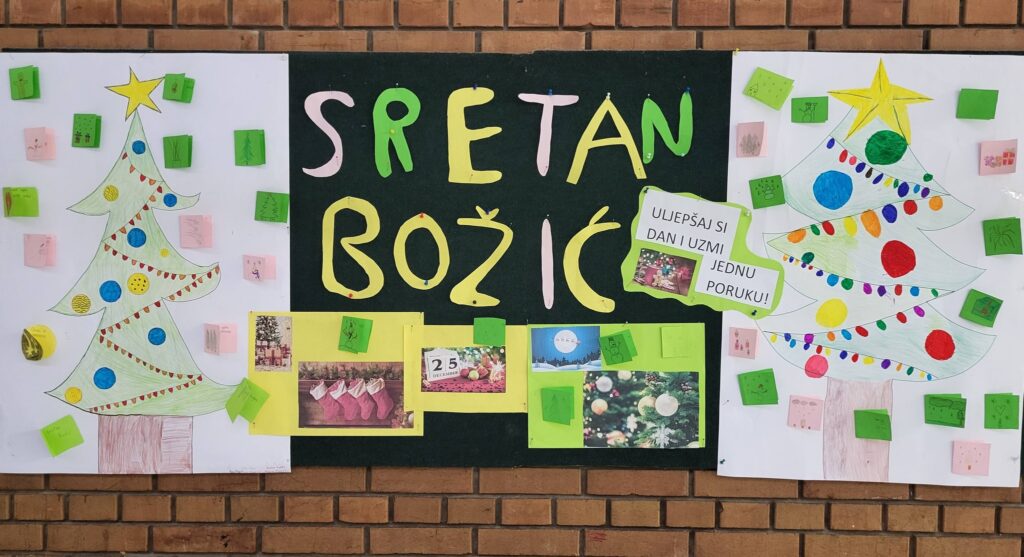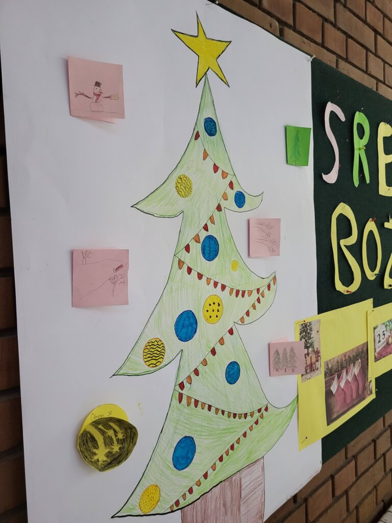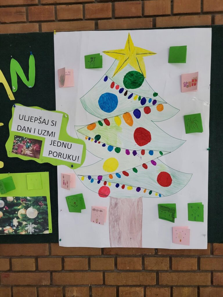 Učenici 5. A razreda u sklopu nastave hrvatskog jezika ukrasili su pano prigodnim božićnim crtežima te na svakom boru ostavili lijepe božićne želje koje svatko može uzeti. 🎄✨😊