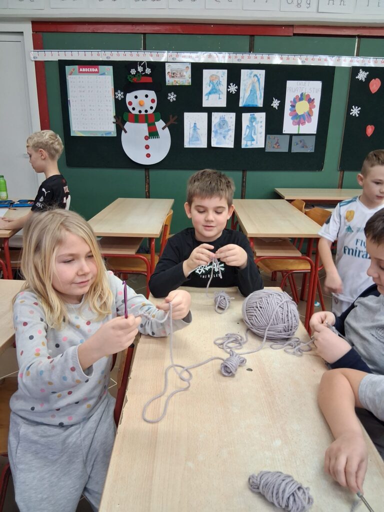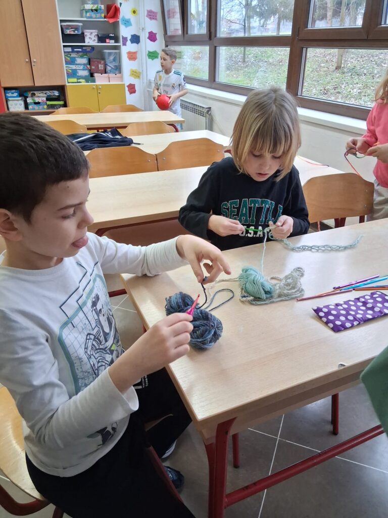 Radionicu „Mala škola heklanja“ pohađaju učenici 2.a i 2.b razreda u produženom boravku s učiteljicom Josipom Božić koja ih uči ovoj već pomalo zaboravljenoj vještini.