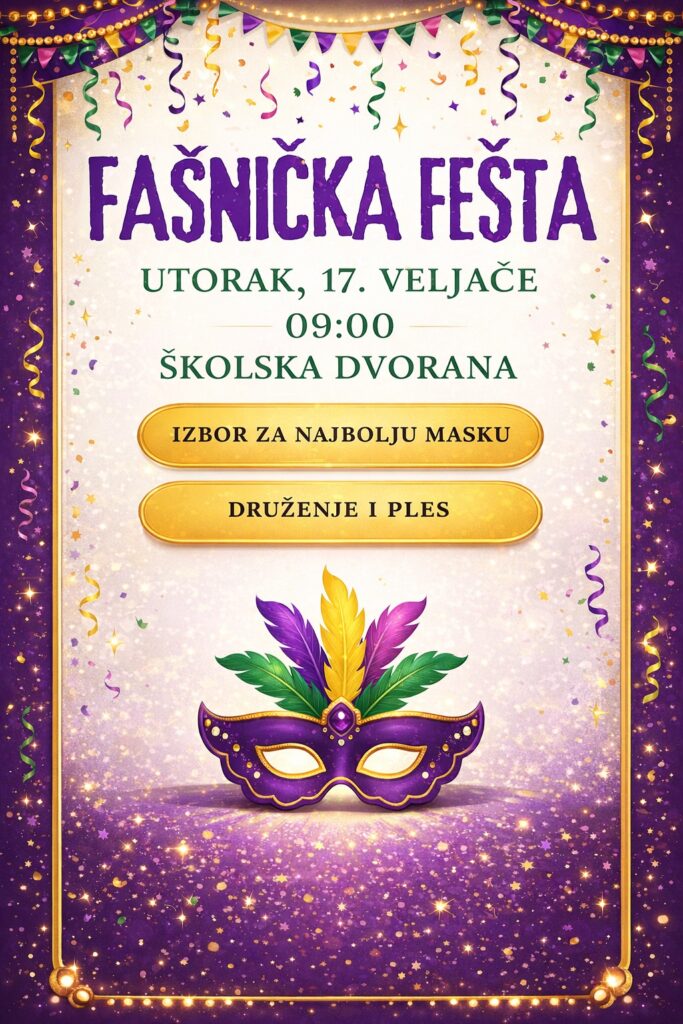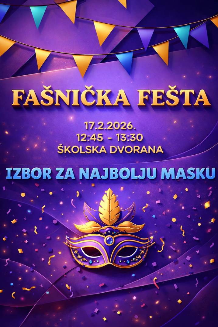 ovim putem vas obavještavamo kako će se u utorak 17. veljače 2026. godine u našoj školi održati